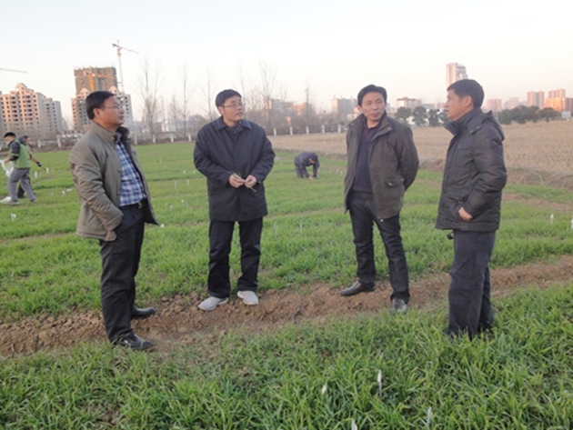 12月17-18日,國家小麥工程技術(shù)研究中心副主任、河南省小麥產(chǎn)業(yè)技術(shù)體系栽培崗位專(zhuān)家王晨陽(yáng)研究員帶領(lǐng)團隊成員謝迎新博士等一行來(lái)信陽(yáng)調研,主要了解信陽(yáng)小麥抗逆增產(chǎn)栽培技術(shù)應用情況、當前小麥苗情長(cháng)勢及生產(chǎn)中存在的問(wèn)題,重點(diǎn)了解稻茬小麥隱性災害發(fā)生情況和小麥生產(chǎn)中遇到的栽培技術(shù)瓶頸問(wèn)題。副院長(cháng)、河南省小麥產(chǎn)業(yè)技術(shù)體系信陽(yáng)綜合試驗站站長(cháng)祁玉良研究員,試驗站團隊成員周?chē)诟毖芯繂T等陪同調研。