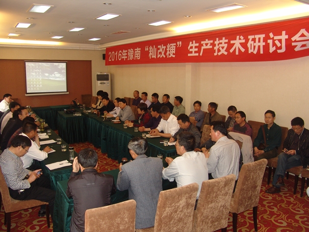4月12日下午,2016年豫南“秈改粳”生產(chǎn)技術(shù)研討會(huì )在信陽(yáng)賓館召開(kāi),來(lái)自我市各縣區及駐馬店市確山縣、南陽(yáng)市桐柏縣“秈改粳”項目協(xié)作單位的負責人和技術(shù)人員、示范基地負責人及重點(diǎn)示范戶(hù)代表50余人參加了會(huì )議。豫南“秈改粳”項目負責人宋世枝研究員主持會(huì )議。