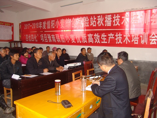 眼下雖正值小麥播種季節,但由于多日的連續陰雨,對我市小麥整地播種帶來(lái)不利影響。為進(jìn)一步提升對口幫扶村息縣小茴店張老莊村群眾的小麥種植水平,使當地群眾能如期種上麥,種好麥,10月17日是第四個(gè)“國家扶貧日”,當天上午,院總農藝師段斌、院小麥所李宇峰研究員一行赴該村開(kāi)展小麥生產(chǎn)技術(shù)培訓,院派駐該村第一書(shū)記金開(kāi)美以及張老莊村種田農戶(hù)40余人參加了培訓活動(dòng)。