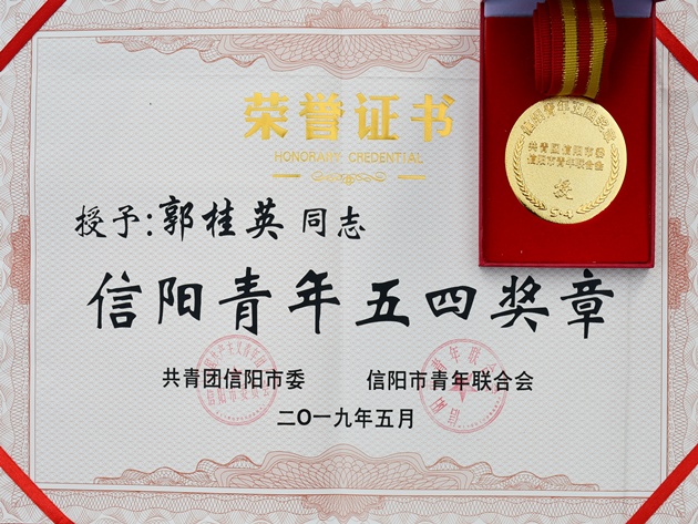 “信陽(yáng)青年五四獎?wù)?rdquo;是共青團信陽(yáng)市委、信陽(yáng)市青年聯(lián)合會(huì )授予為全市改革發(fā)展做出杰出貢獻的青年和青年集體的最高榮譽(yù)。此次表彰共授予了26名同志“信陽(yáng)青年五四獎?wù)?rdquo;和15個(gè)青年集體“信陽(yáng)青年五四獎?wù)录w”,郭桂英同志是此次表彰中全市農科系統惟一獲此榮譽(yù)的科研工作者。