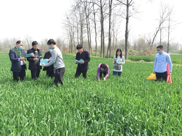 專(zhuān)家組一行分別查看了我院承擔的省“四優(yōu)四化”優(yōu)質(zhì)小麥專(zhuān)項鄭麥103、鄭麥113示范基地,還對我院承擔的和正在開(kāi)展的相關(guān)栽培試驗、肥料試驗進(jìn)行了全面指導。每到一處,專(zhuān)家組都拔出幾棵麥株仔細查看,認真研判苗情、長(cháng)勢及病蟲(chóng)害發(fā)生情況?吹礁魇痉秴^小麥長(cháng)勢良好,田間管理工作及時(shí)到位,無(wú)病蟲(chóng)草害發(fā)生,專(zhuān)家組對我院疫情期間克服困難加強麥田管理工作給予充分肯定,對我院的工作給予了高度贊賞。