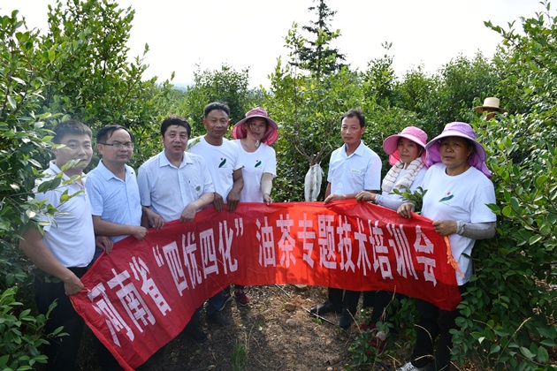 6月5日,河南省“四優(yōu)四化”科技支撐行動(dòng)計劃林果專(zhuān)項“河南油茶標準化生產(chǎn)技術(shù)與示范”專(zhuān)題在光山縣司馬光油茶園舉辦“優(yōu)質(zhì)油茶高接換冠撕皮嫁接技術(shù)”培訓會(huì )。油茶專(zhuān)題負責人、省林科院丁向陽(yáng)研究員,優(yōu)質(zhì)品種油茶推廣任務(wù)負責人、我院金開(kāi)美副研究員,專(zhuān)題與任務(wù)相關(guān)技術(shù)人員,河南省聯(lián)興油茶產(chǎn)業(yè)開(kāi)發(fā)有限公司的管理人員、技術(shù)人員參加了此次培訓會(huì )。