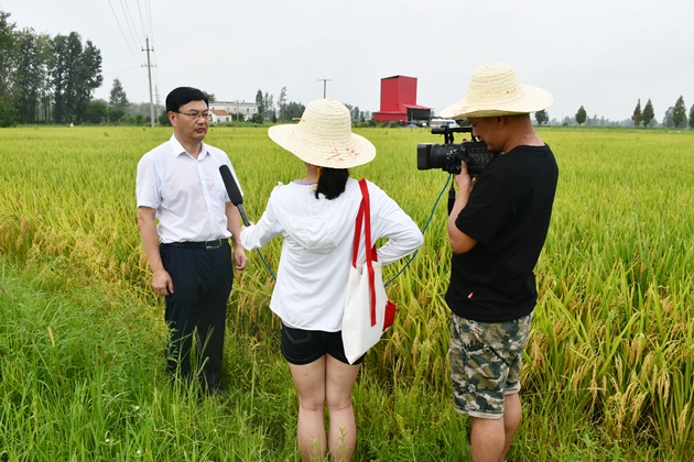 當前,我市再生稻的頭季已進(jìn)入收獲期,8月8日,由我院舉辦的信陽(yáng)市創(chuàng )新應用專(zhuān)項“豫南再生稻優(yōu)質(zhì)高效栽培技術(shù)研究與示范”現場(chǎng)測產(chǎn)會(huì )在商城縣鄢崗鎮曹寨村召開(kāi),來(lái)自河南省農業(yè)科學(xué)院、信陽(yáng)農林學(xué)院、信陽(yáng)市農業(yè)農村局、新鄉市農業(yè)科學(xué)院、南陽(yáng)市農業(yè)科學(xué)院等科研院所高等院校的專(zhuān)家對該村再生稻示范片頭季的產(chǎn)量進(jìn)行了現場(chǎng)測產(chǎn)。