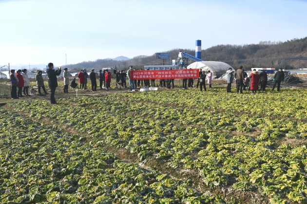 1月9日,河南省“四優(yōu)四化”優(yōu)質(zhì)蔬菜專(zhuān)項黃心菜標準化生產(chǎn)技術(shù)集成與示范現場(chǎng)觀(guān)摩會(huì )在浉河區柳河翠蔬菜專(zhuān)業(yè)合作社召開(kāi)。河南省“四優(yōu)四化”優(yōu)質(zhì)蔬菜專(zhuān)項負責人、中原學(xué)者張曉偉研究員,省農科院原玉香研究員、王志勇副研究員,我院副院長(cháng)王青林、總農藝師段斌出席會(huì )議,市蔬菜辦、市種子管理站、市農產(chǎn)品質(zhì)檢中心、信陽(yáng)農林學(xué)院、浉河區農檢站等相關(guān)工作人員和蔬菜專(zhuān)業(yè)合作社負責人以及蔬菜種植戶(hù)共60余人參加了觀(guān)摩會(huì )。