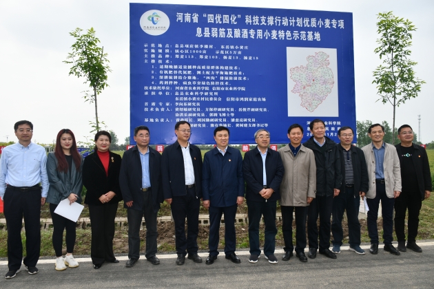 4月26-27日,由河南省農業(yè)科學(xué)院、息縣人民政府、我院主辦,息縣農科所承辦的院縣共建科技支撐鄉村振興示范縣暨河南省優(yōu)質(zhì)弱筋及釀酒專(zhuān)用小麥產(chǎn)業(yè)高質(zhì)量發(fā)展研討會(huì )在息縣隆重召開(kāi)。中國工程院院士、省農科院院長(cháng)張新友,省農科院副院長(cháng)衛文星,信陽(yáng)市委常委、市政府副市長(cháng)李征,息縣縣長(cháng)袁剛,省農農村廳二級巡視員李軍、省科技廳農村處處長(cháng)李錦輝、省農科院科研管理處處長(cháng)田云峰、省農科院小麥研究所所長(cháng)雷振生、省農科院科技成果示范推廣處處長(cháng)王強、我院黨委書(shū)記李杰、副院長(cháng)祁玉良等領(lǐng)導專(zhuān)家出席會(huì )議。河南省“四優(yōu)四化”優(yōu)質(zhì)小麥專(zhuān)項首席專(zhuān)家李向東以及我院和省內其他科研院所代表、省農科院科研處、推廣處、小麥所等單位有關(guān)專(zhuān)家,部分釀酒企業(yè)、種業(yè)公司、糧食企業(yè)、面制品企業(yè)以及息縣各鄉鎮(街道)黨(工)委書(shū)記、分管領(lǐng)導,息縣縣直有關(guān)單位主要負責同志和媒體記者等170余人參加會(huì )議。息縣縣委副書(shū)記林長(cháng)主持會(huì )議。