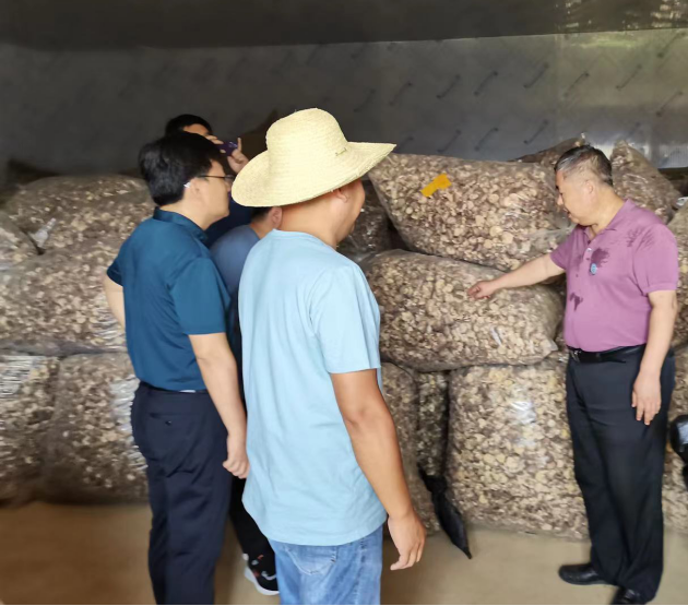 6月14日,河南省食用菌產(chǎn)業(yè)技術(shù)體系首席科學(xué)家、省農科院資環(huán)所所長(cháng)張玉亭研究員、省科學(xué)技術(shù)廳總農藝師王備戰一行到信陽(yáng)市光山縣開(kāi)展香菇生產(chǎn)技術(shù)指導。河南省食用菌產(chǎn)業(yè)技術(shù)體系信陽(yáng)綜合試驗站站長(cháng)張應香副研究員、我院食用菌專(zhuān)家龔鳳萍副研究員、光山縣文殊鄉東岳村第一書(shū)記潘瑛矗陪同。