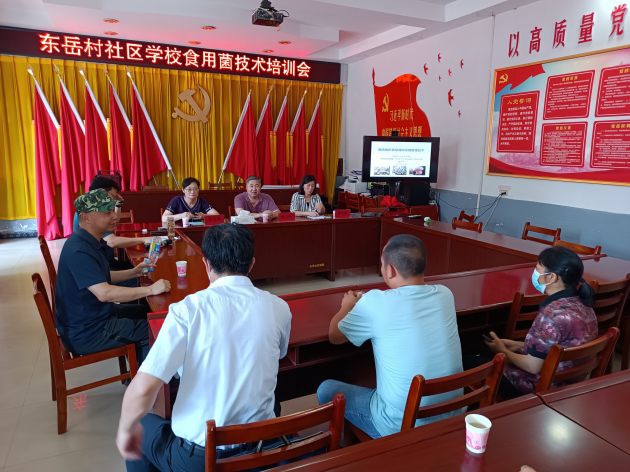 隨后,張玉亭研究員一行在東岳村社區學(xué)校召開(kāi)了香菇種植技術(shù)座談會(huì )。會(huì )上信陽(yáng)試驗站團隊龔鳳萍副研究員以豫南地區香菇生產(chǎn)關(guān)鍵技術(shù)為題做了專(zhuān)題培訓,圍繞優(yōu)良菌種選擇、健壯菌棒培育、優(yōu)質(zhì)菇管理等詳細進(jìn)行了講解。專(zhuān)家團隊同種植戶(hù)進(jìn)行了深入的交流和探討,為當地種植戶(hù)和想要發(fā)展香菇種植的農戶(hù)提供了專(zhuān)業(yè)建議。