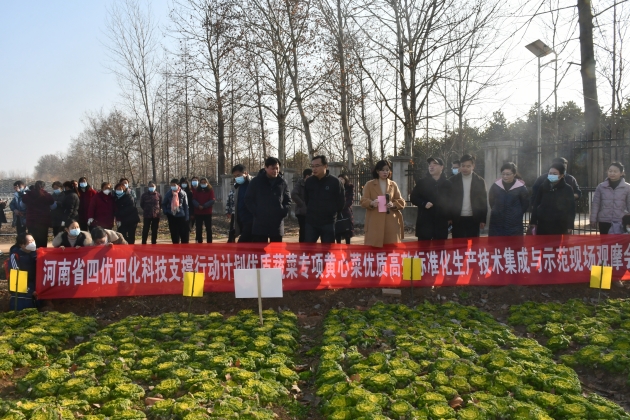 1月6日-7日,由我院主辦的河南省“四優(yōu)四化”科技支撐行動(dòng)計劃優(yōu)質(zhì)蔬菜專(zhuān)項黃心菜優(yōu)質(zhì)高效標準化生產(chǎn)技術(shù)集成與示范培訓暨示范觀(guān)摩會(huì )在信陽(yáng)召開(kāi)。中原學(xué)者、河南省“四優(yōu)四化”優(yōu)質(zhì)蔬菜專(zhuān)項負責人張曉偉研究員、露地蔬菜產(chǎn)區化肥減施提效計劃專(zhuān)題負責人王志勇副研究員、院總農藝師段斌出席會(huì )議。信陽(yáng)市農業(yè)農村局、浉河區農業(yè)農村局、平橋區農業(yè)農村局及各鄉鎮農技推廣人員、信陽(yáng)市及周邊蔬菜園區、合作社負責人、種植大戶(hù)、媒體記者等70余人參加會(huì )議。