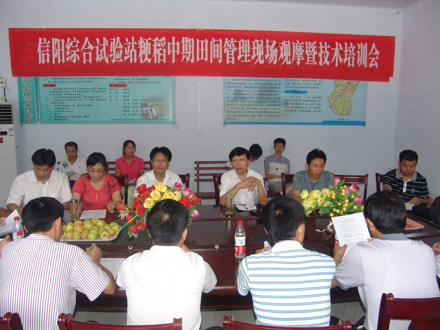 為進(jìn)一步交流粳稻生產(chǎn)經(jīng)驗,推廣粳稻先進(jìn)技術(shù),7月30日,國家水稻產(chǎn)業(yè)技術(shù)體系信陽(yáng)綜合試驗站召開(kāi)全市粳稻中期田間管理現場(chǎng)觀(guān)摩暨技術(shù)培訓會(huì )。試驗站團隊成員,羅山、潢川、息縣、固始、平橋、淮濱、商城及駐馬店正陽(yáng)等8個(gè)縣區的技術(shù)負責人和部分種田大戶(hù)40余人參加了此次會(huì )議。