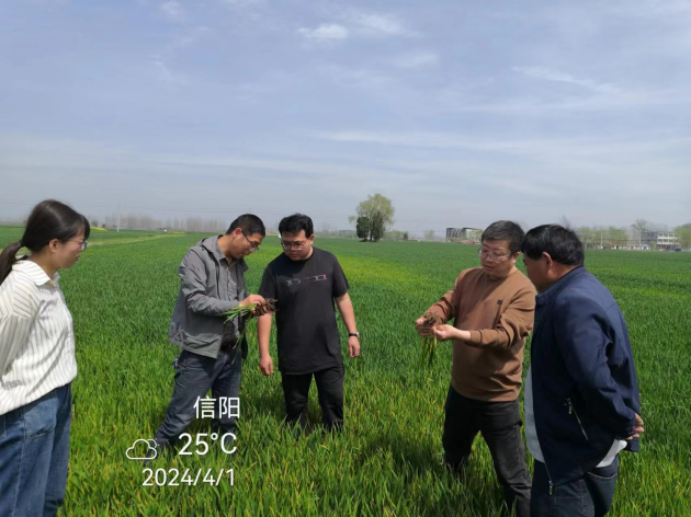 為第一時(shí)間了解情況,解決農民群眾小麥生產(chǎn)中遇到的實(shí)際問(wèn)題,4月1日,我院植保專(zhuān)家李慧龍、小麥專(zhuān)家尹志剛等一行4人,專(zhuān)程前往張老莊村開(kāi)展小麥田間管理技術(shù)服務(wù)。專(zhuān)家們在田間經(jīng)過(guò)認真調查分析后,確認是由于小麥細菌性葉枯病所引起,同時(shí)又因漬害加重了病害的發(fā)生程度。