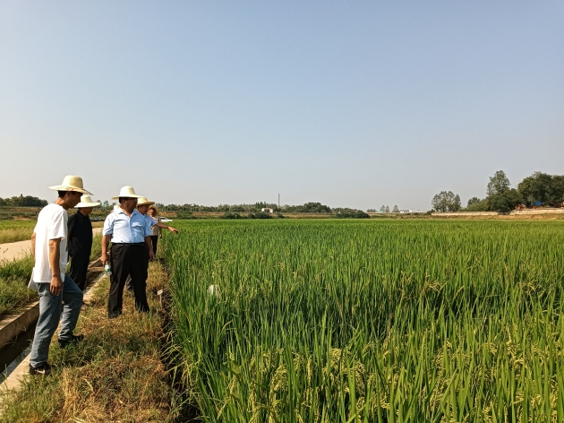 8月27日,我院水稻專(zhuān)家王青林研究員一行先后前往院示范基地和科研園區,對郭桂英主持的信陽(yáng)市重點(diǎn)研發(fā)與推廣專(zhuān)項“豫南稻區秈稻品種改良研究”項目開(kāi)展情況進(jìn)行工作指導。我院副院長(cháng)祁玉良、水稻所所長(cháng)扶定等隨同指導。