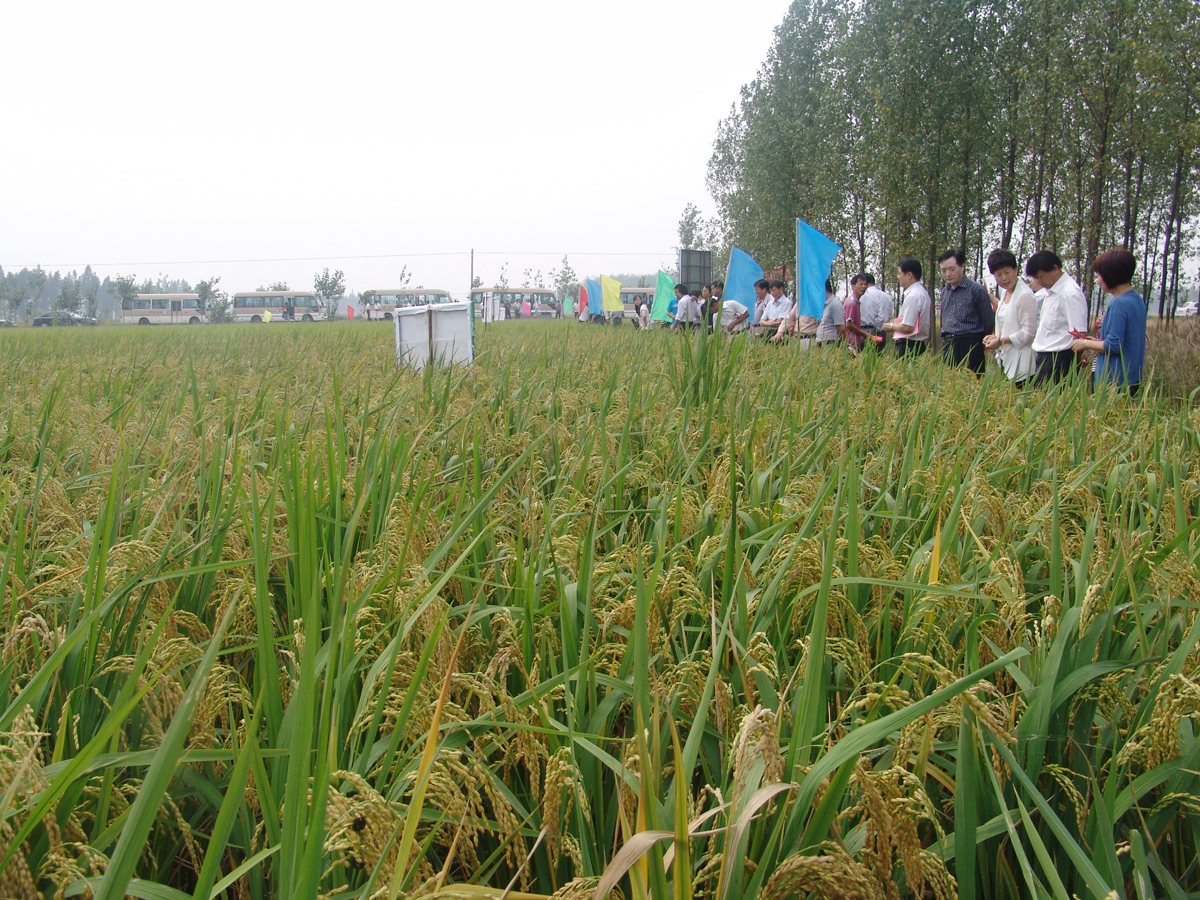 會(huì )議又相繼觀(guān)摩了羅山縣農科所試驗園區、羅山縣東鋪鎮、息縣孫廟鄉的“秈改粳”高產(chǎn)示范和生產(chǎn)基地。各基地按照專(zhuān)項提出的技術(shù)方案,實(shí)行規;竺娣e種植,經(jīng)過(guò)技術(shù)人員的精心指導,粳稻長(cháng)勢喜人,預計平均單產(chǎn)達到700公斤,普遍比當地秈稻畝產(chǎn)要高出75-100公斤,經(jīng)濟和社會(huì )效益可觀(guān)。觀(guān)摩后,與會(huì )人員都深切地感受到,種植粳稻不僅產(chǎn)量更高,品質(zhì)更優(yōu),而且效益更好,豫南稻區發(fā)展粳稻生產(chǎn)勢在必行。