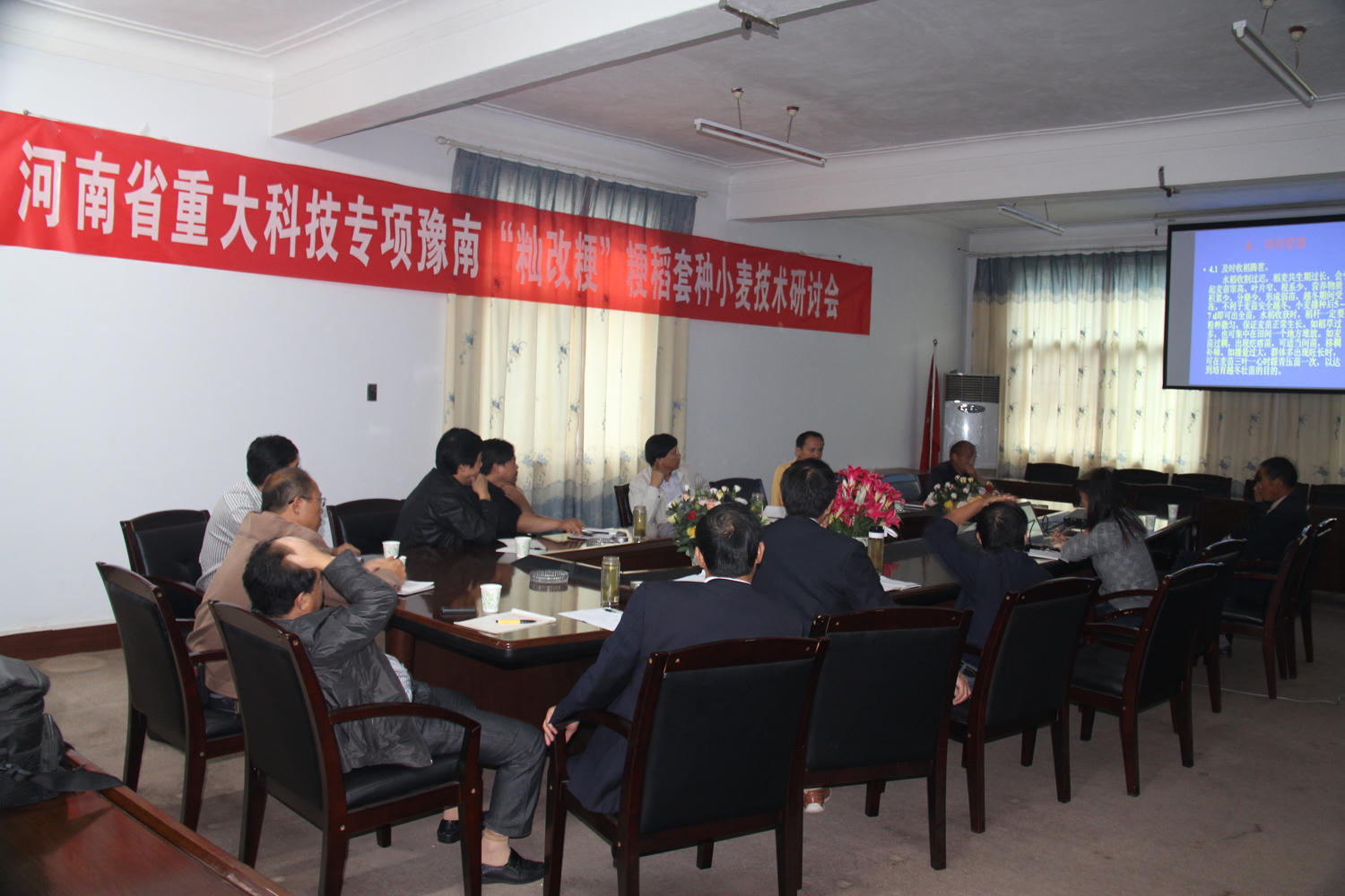 信陽(yáng)市農科院小麥專(zhuān)家周?chē)诟毖芯繂T在會(huì )上作了“粳稻套種小麥栽培技術(shù)”的介紹,就粳稻套種小麥的品種選擇、播期播量、雜草防治等田間管理技術(shù)措施作了詳細的闡述。會(huì )議經(jīng)過(guò)充分討論,制定了《粳稻套種小麥技術(shù)實(shí)施方案》。