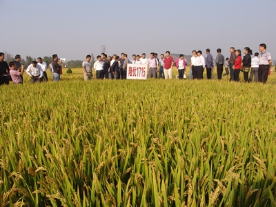 與會(huì )人員實(shí)地參觀(guān)了商城縣河鳳橋鄉粳稻示范基地。今年該示范基地共種植粳稻850畝,其中寧粳3號核心示范500畝,由于采用全程機械化技術(shù)、肥水調控技術(shù)、病蟲(chóng)草害綠色防控技術(shù),粳稻長(cháng)勢喜人,株株稻穗色澤金黃,籽粒飽滿(mǎn),一片豐收景象,經(jīng)專(zhuān)家測產(chǎn),寧粳3號畝均產(chǎn)量600公斤以上,高產(chǎn)田塊可達800公斤以上。在示范田邊,高產(chǎn)的稻面和沉甸甸的稻穗一下子吸引了種糧大戶(hù)們的目光,他們情不自禁地用手去撫摸稻穗,不時(shí)向專(zhuān)家們詢(xún)問(wèn)粳稻種植、栽培和管理等方面的技術(shù)知識,紛紛表示,種植粳稻既增產(chǎn)又增收,今后將積極選種高產(chǎn)優(yōu)質(zhì)粳稻品種,大力發(fā)展粳稻種植。