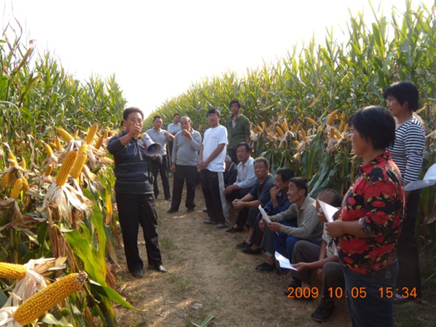 地找好了,另一個(gè)阻力又來(lái)了。農民對教授們的技術(shù)很消極——6月初小麥收了,第一季實(shí)驗就從玉米開(kāi)始。“我們把高產(chǎn)高效技術(shù)講得很細,用什么優(yōu)良種子、什么肥料,怎么施肥,想讓農民跟著(zhù)我們的指導做。想得挺好,但是做起來(lái)那個(gè)難呀。”李曉林說(shuō)到這里直搖頭。