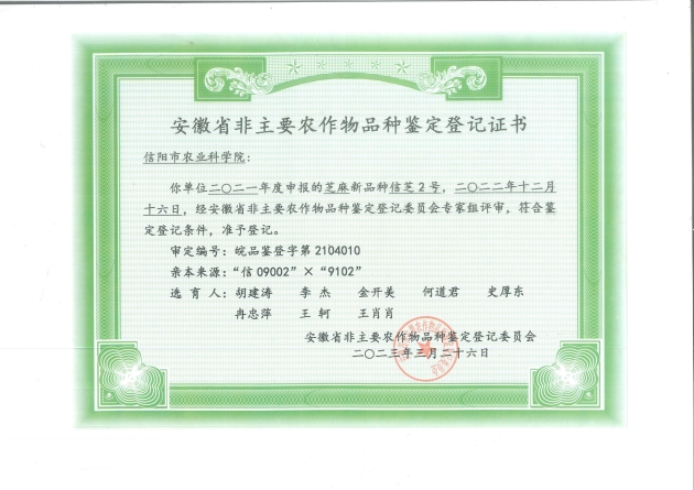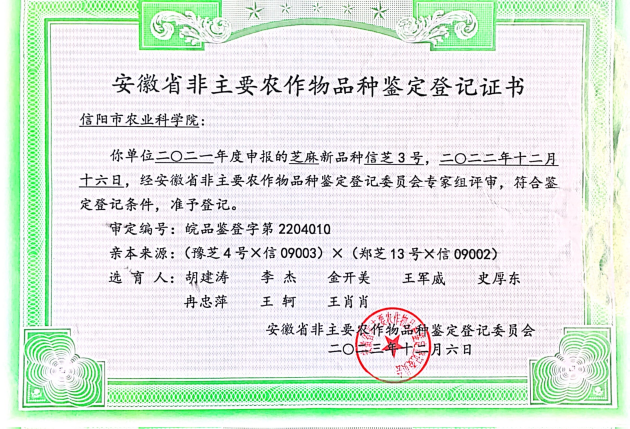 由我院主持選育的芝麻新品種信芝2號和信芝3號通過(guò)了2023年安徽省非主要農作物品種鑒定登記委員會(huì )鑒定,填補了我市芝麻學(xué)科在新品種選育領(lǐng)域的空白。