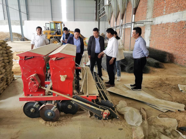 在羅山縣子路問(wèn)津種植專(zhuān)業(yè)合作社,王萬(wàn)章一行在合作社理事長(cháng)陳貴權的介紹下認真查看了拌種劑、播種機、開(kāi)溝機、收割機和烘干機等農機設備,了解到到合作社流轉土地5300多畝,稻茬小麥平均產(chǎn)量達500多公斤以上,全年農機作業(yè)增收200多萬(wàn)元,社員實(shí)現分配收入150萬(wàn)元以上。在創(chuàng )造經(jīng)濟效益的同時(shí)還為周邊農戶(hù)創(chuàng )造就業(yè)崗位、增加收入。王教授對合作社的做法非常贊賞,強調稻茬小麥的出路就在于機械化,農機農藝融合,是發(fā)展現代農業(yè)的必然追求,以后會(huì )關(guān)注合作社的發(fā)展,在農機裝備方面提供技術(shù)咨詢(xún)服務(wù)。