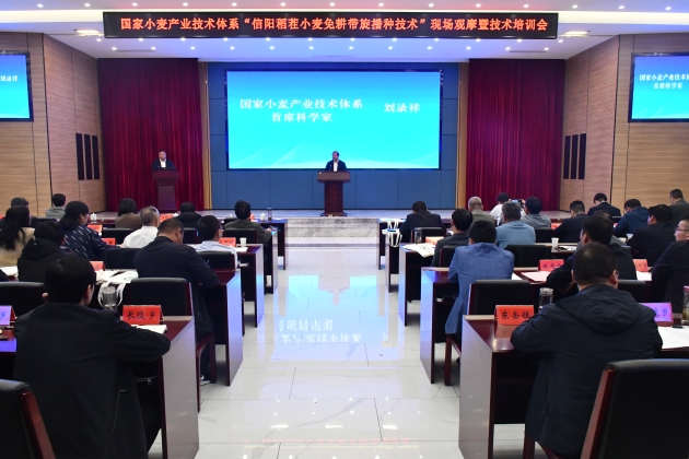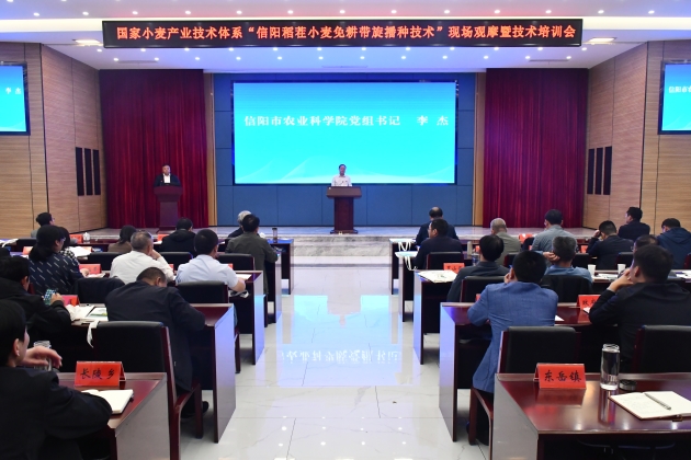 10月22日,由國家小麥產(chǎn)業(yè)技術(shù)體系、信陽(yáng)市人民政府主辦,我院、信陽(yáng)市農業(yè)農村局、息縣人民政府承辦,息縣宏升糧食制品有限公司協(xié)辦的國家小麥產(chǎn)業(yè)技術(shù)體系“信陽(yáng)稻茬小麥免耕帶旋播種現場(chǎng)觀(guān)摩暨技術(shù)培訓會(huì )”在息縣成功召開(kāi)。國家小麥產(chǎn)業(yè)技術(shù)體系首席科學(xué)家劉錄祥研究員、河南農業(yè)大學(xué)郭天財教授、信陽(yáng)市副市長(cháng)汪明君、院黨組書(shū)記李杰等出席會(huì )議。會(huì )議分現場(chǎng)觀(guān)摩和室內培訓兩個(gè)階段進(jìn)行,息縣縣委副書(shū)記、代縣長(cháng)鄭春,院長(cháng)鐘思志先后主持會(huì )議。